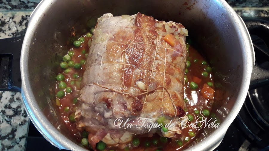 A media cocción, añadir los guisantes.