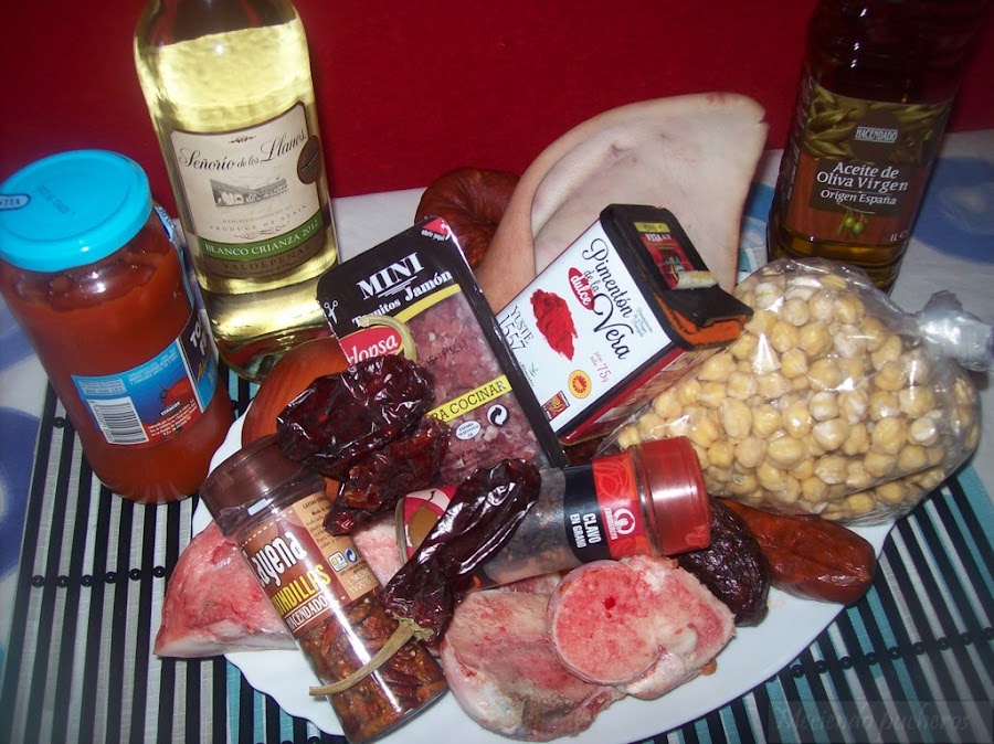 Cuando se hayan cocido los garbanzos y los embutidos, los retiramos junto con la papada de cerdo y el hueso de jamón.