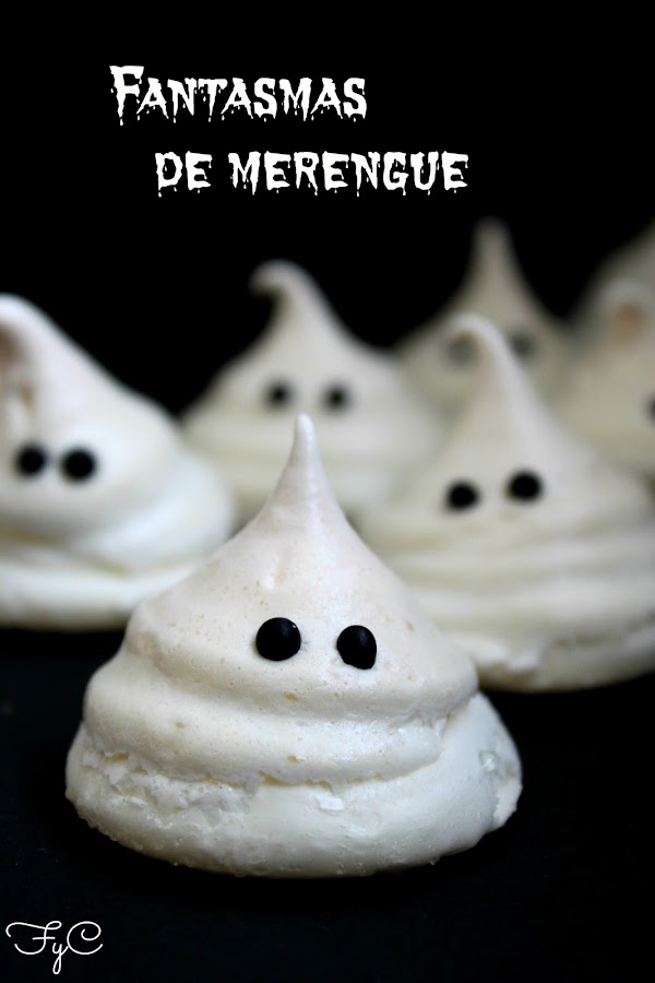 Celebremos o no Halloween quedarán genial en cualquier fiesta infantil, porque podemos dar al merengue cualquier forma con una manga pastelera (aquí entra en juego la imaginación de cada uno).