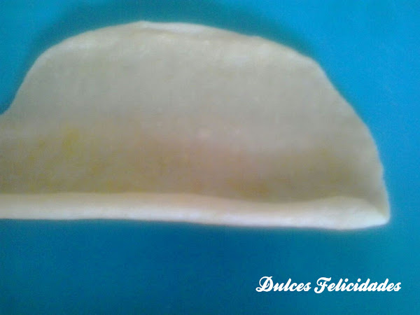 6. Con ayuda de un rodillo aplanaremos las porciones de masa y luego las enrollaremos como se puede ver en la siguiente foto: