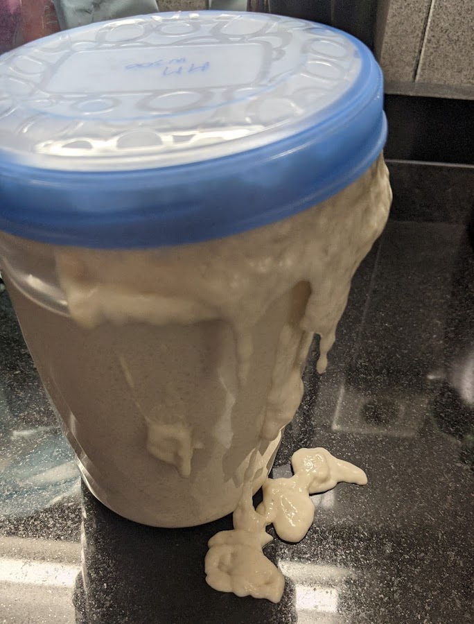 160 g de masa madre liquida, hecha con harina W300 de Villamayor