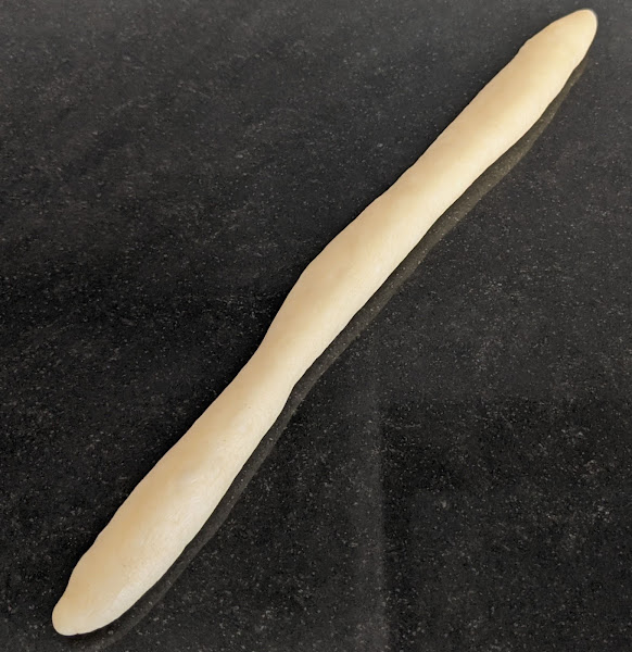 6. Formamos como se ve en la secuencia de fotos siguientes. No olvidéis rular muyyyy bien las barritas. Las mías de 20-21 cm de longitud