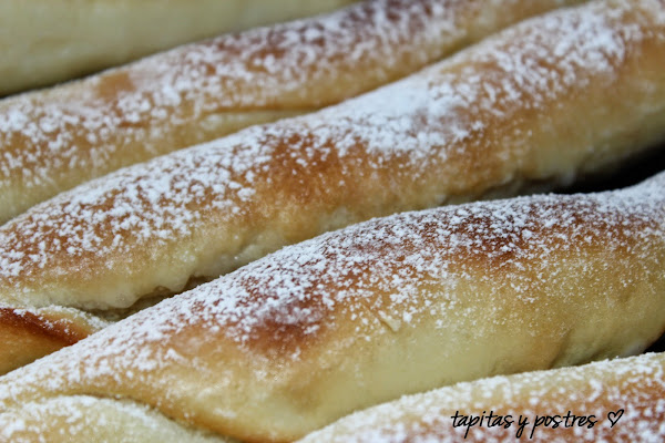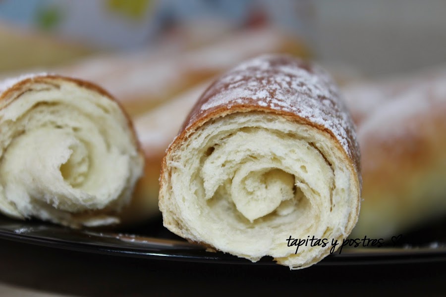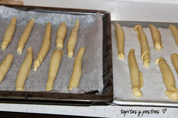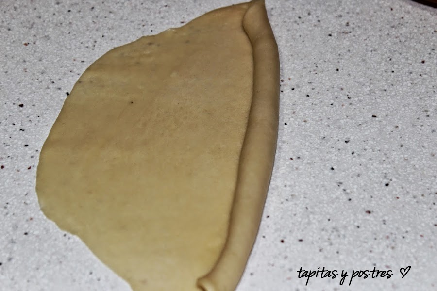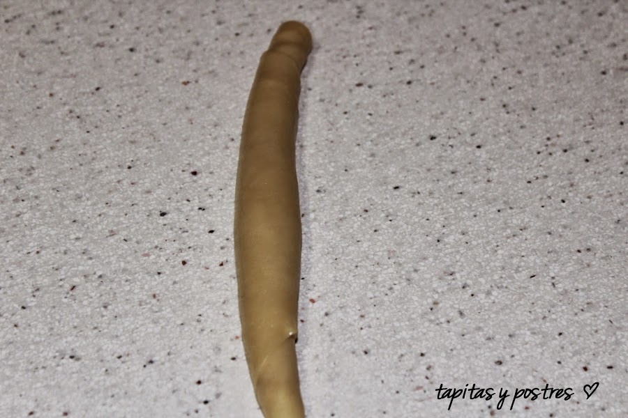 La vamos enrollando y damos forma de cilindro. Las dejamos levar una hora o dos.
