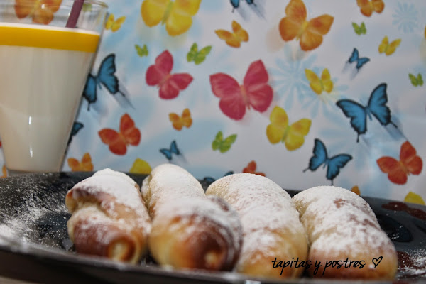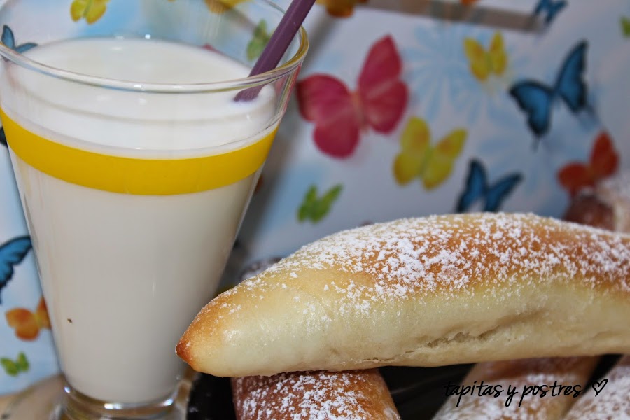 Esta es una receta típica valenciana que se toma con horchata, pero a mi no me gusta mucho, así que con un vasito de leche, chocolate... o a palo seco, que también están muy buenos.