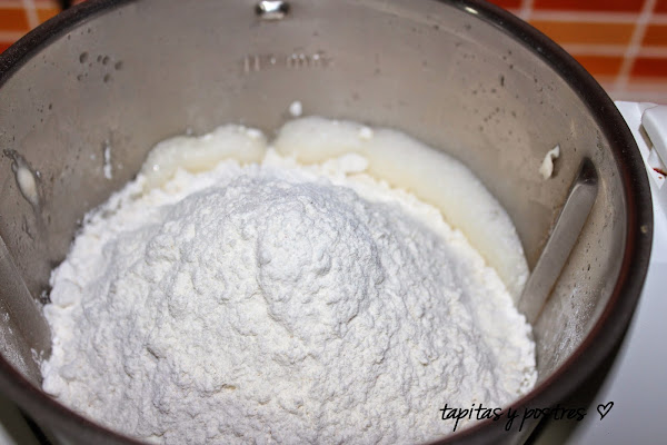 Echamos la harina y la sal, mezclamos primero 20 segundos a velocidad 5 y luego 2 minutos a velocidad espiga.