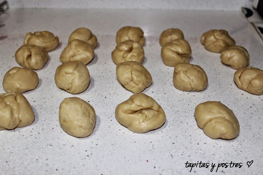 A la hora, hacemos porciones de unos 35 gramos. Salieron 20.