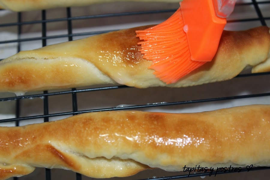 Los ponemos a enfriar en una rejilla y cuando estén tibios los pintamos con la glasa.