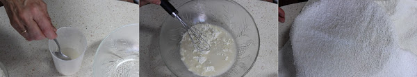 Calentamos la leche en el microondas unos 15 segundos y disolvemos la levadura en ella.