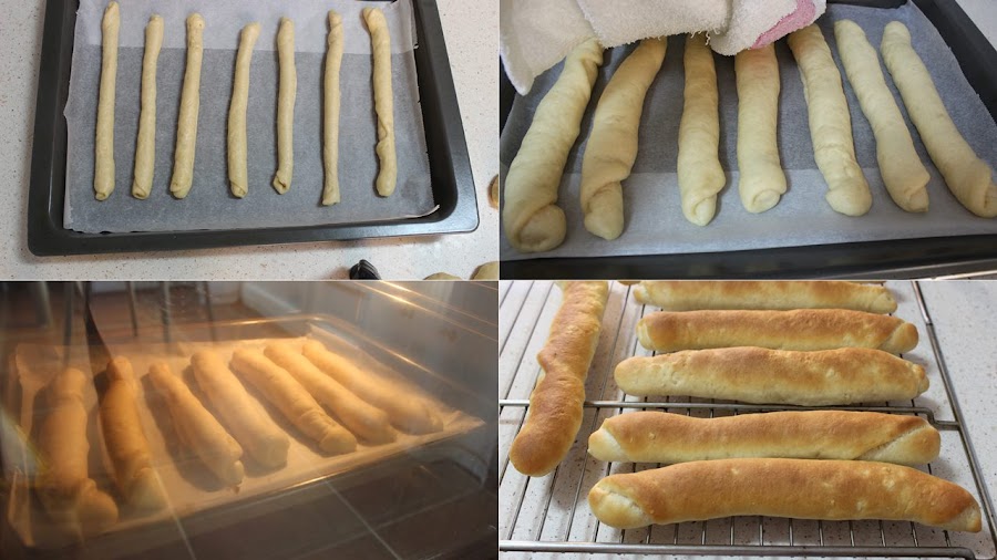 Los ponemos en una bandeja de horno y los dejamos reposar hasta que doblen su volumen. Yo precaliento el horno a 45ºC , lo apago y los meto tapados con un paño unos 30 minutos. Así levan más rápido. Los sacamos...