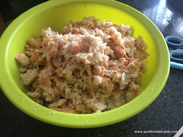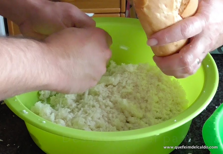 Desmigamos el pan de kilo, es recomendable que el pan sea de días anteriores.