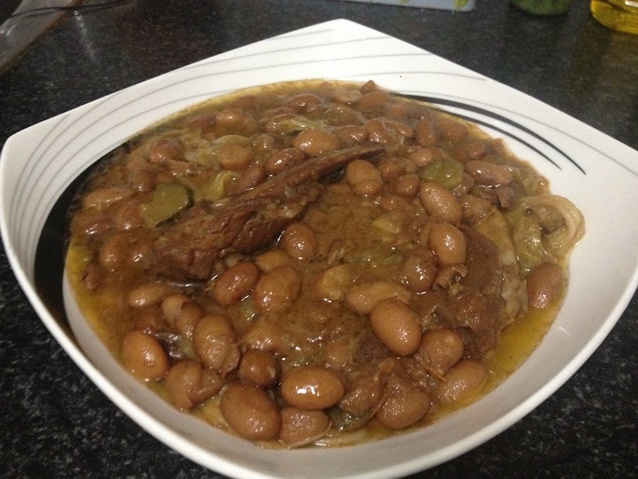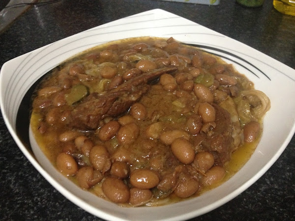 6º - Cuando comprobemos que las alubias se ablandan y espesa la salsa , retiramos la olla del fuego y servimos bien caliente en la mesa .