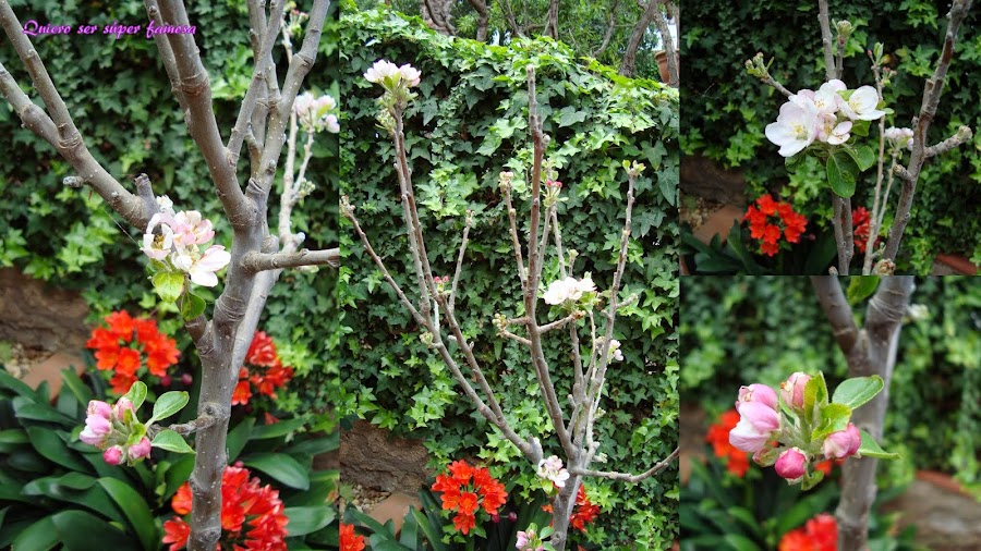 Con la llegada de la primavera el recién plantado manzano, verde doncella, ha abierto sus primeras flores en mi jardín. Ya estoy deseando ver sus frutos.