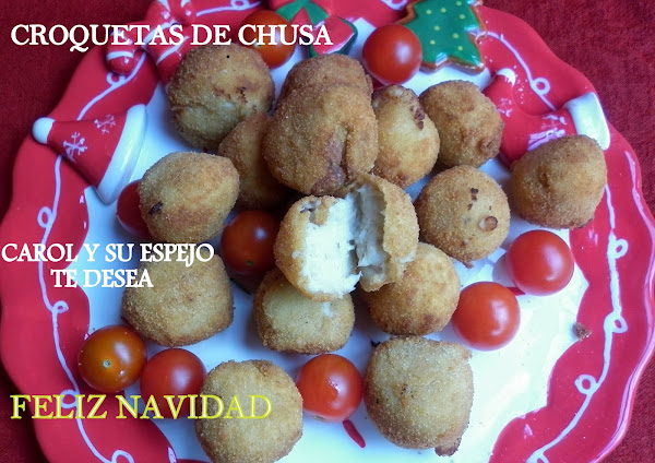 CHUSA: he elegido unas croquetas porque me gustó mucho la entrada que ha hecho de la recopilación de croquetas , a mi me encantan todas!!! así que, si te pasa como a mí, no te puedes perder este enlacehttp://bien-me-sabe.blogspot.com.es/2013/11/croquetas-para-todos-los-gustos.html, lo vas a disfrutar.