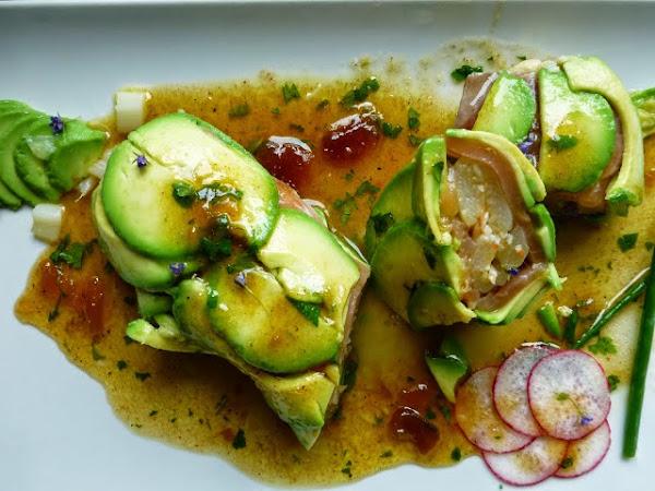 Tiene un pintón extraordinario, es del blog "Cocina con Vistas" y nos ofrece esta rica receta. No es difícil hacer pero hay que seguir las instrucciones, para no llevarnos sorpresas. Lleva: espárragos, surimi, salmón ahumado, aguacate (palta) y luego la salsa de Chutney de mango.