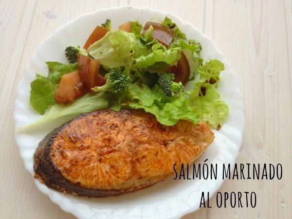 Este marinado solo necesita una hora, es del blog " No sin mi Taper". El marinado se hace con zumo de limón, Oporto, pimentón, eneldo y un poco de picante que puede ser ají, guindilla o unas gotas de Tabasco. Después a la plancha y ya tenemos nuestro Salmón en su punto y sin apenas calorías.