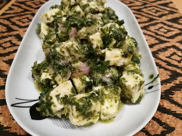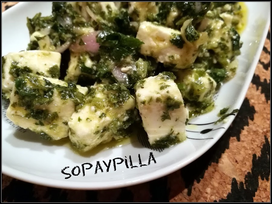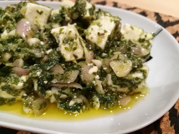 - Cortar la feta en cuadraditos, añadir la salsa y dejar en la nevera unas horas para que tome el sabor.