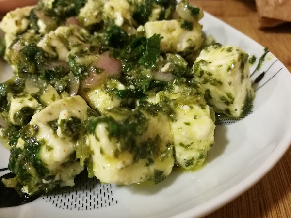Me sorprendió mucho esta receta cuando la vi en la revista "CUINA" porque no es el chimichurri habitual, es bastante diferente. De todas maneras, está buenísimo y lo convierte en un picoteo del todo original.