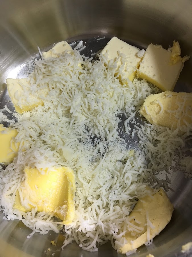 Se cuece la pasta en abundante agua salada según las instrucciones del fabricante. Mientras tanto, se pone en un bol grande la mantequilla (mejor sin sal) y el queso parmesano rallado.