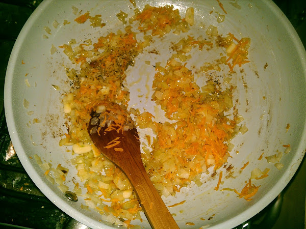 Luego agregar la zanahoria, y el orégano y el tomillo, y la sal sofreir casi al punto de que estén quemadas, mientras mas tostadas queden mas rico queda.