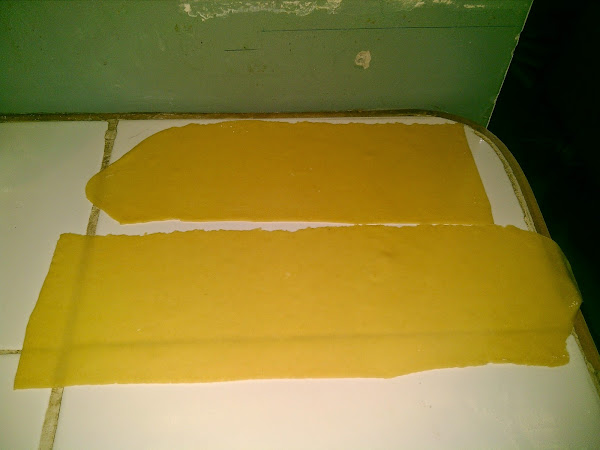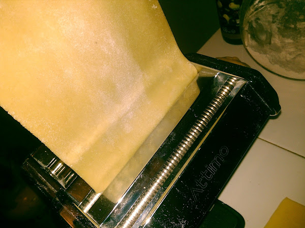 Una vez transcurrido el tiempo se procede a amasar, yo gracias a mi mami que me presto su maquina lo hago con ella, pasando las laminas de pasta varias veces y bajando los niveles de grosor de a uno, por los gustos personales yo uso la maquina hasta el nivel 6 de 10 de grosor.