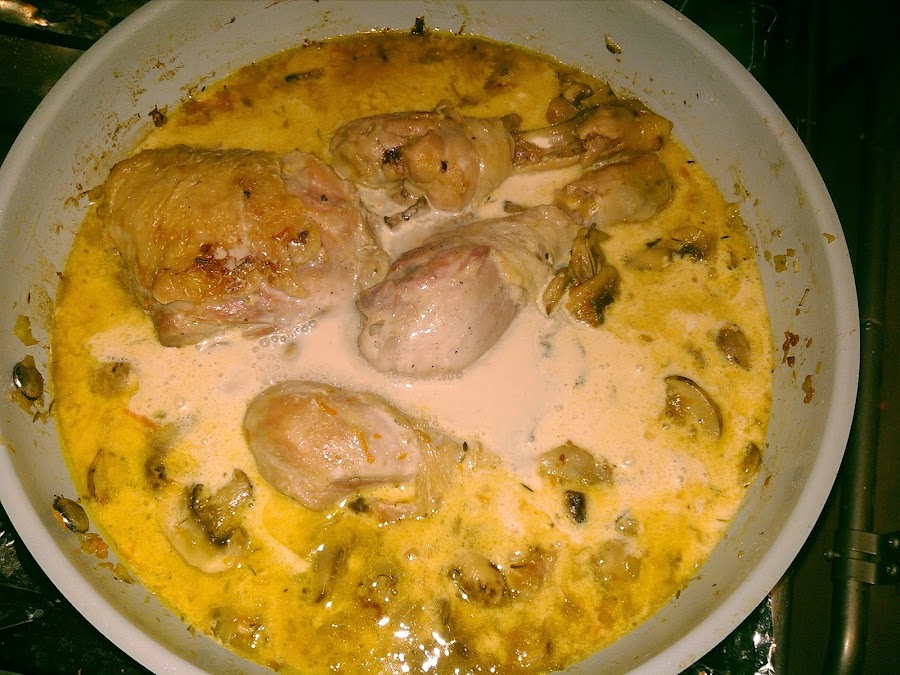 POLLO CON CHAMPIÑONES A LA CREMA: