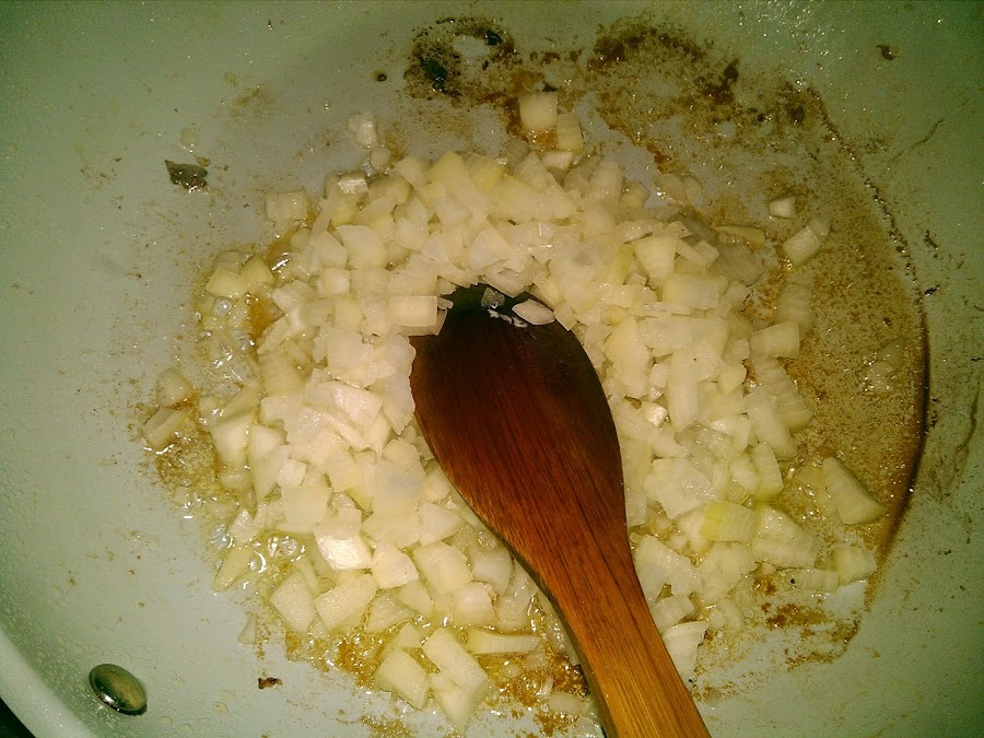 En el mismo sarten para aprovechar el aceite el jugo del pollo agregar la cebolla picada en cuadritos o en brunoise como dice la cuika de mi Tia Viky,