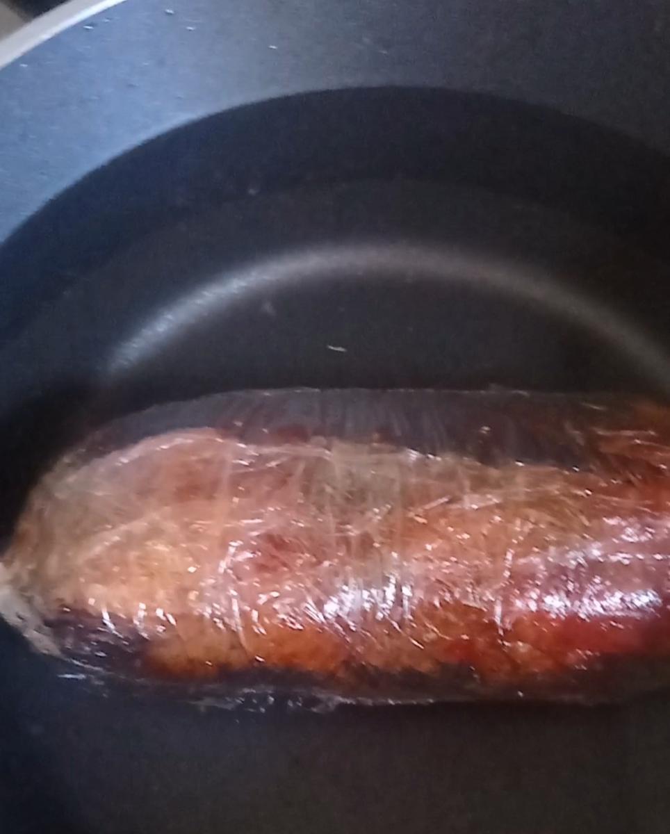 Envolverlo con el film y darle vueltas como un caramelo , repetir cubriendo nuevamente con el film y anudar los bordes.