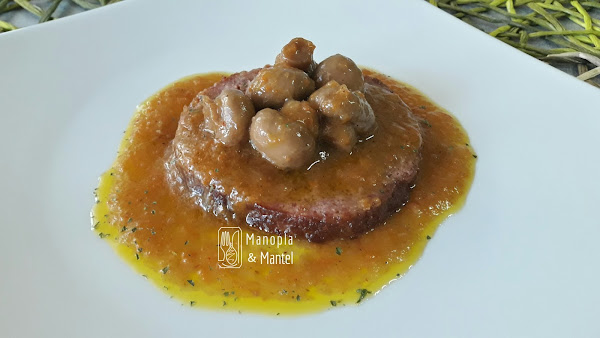 Volvemos a poner la salsa y la carne en la cubeta y echamos los champiñones escurridos. Dejamos cocer con la tapa abierta, menú lento 140º unos minutos para que espese la salsa y se impregnen los champiñones del sabor de la salsa.