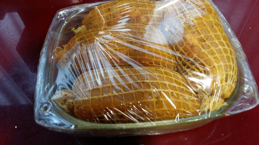 Una vez hecho ésto con todas las pechugas, de una en una vamos cogiéndolas y cerrándolas l lo mejor posible para poder introducirlas en la red.