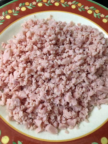 Pica el jamón york y reserva (lo hice con Thermomix).Pica la pechuga de pollo y reserva (igual que el paso anterior).