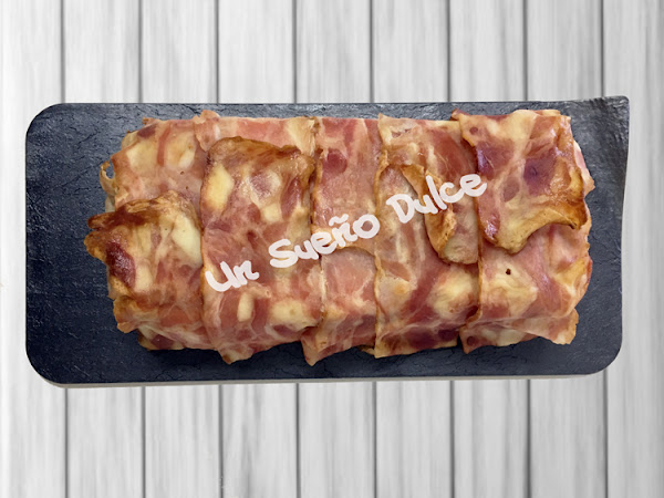 Cubre toda la mezcla con las lonchas de bacon que habías dejado sobresaliendo del molde.
