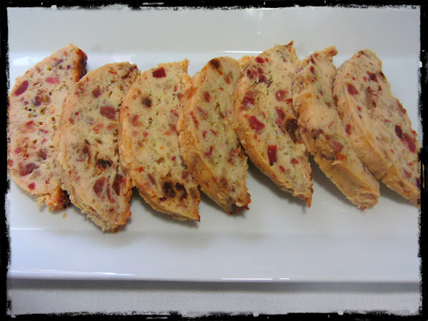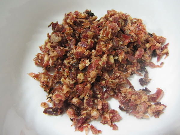 Picamos muy finito el jamón y los tomates secos (En Thermomix, pondremos todo en el vaso y daremos varios golpes de Turbo hasta que se pique).