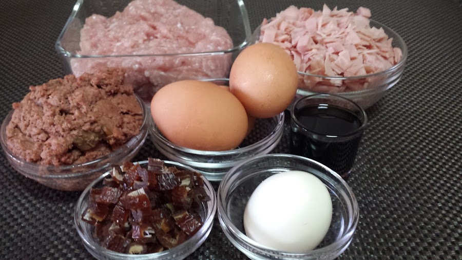 Troceamos los dátiles, el jamón york y el huevo cocido.