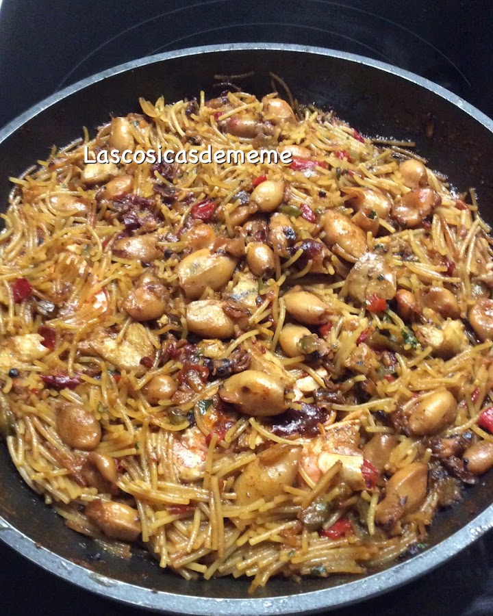 Tiempo de cocción unos 12-15 minutos, depende del tipo y marca de fideos. tienen que quedar secos.