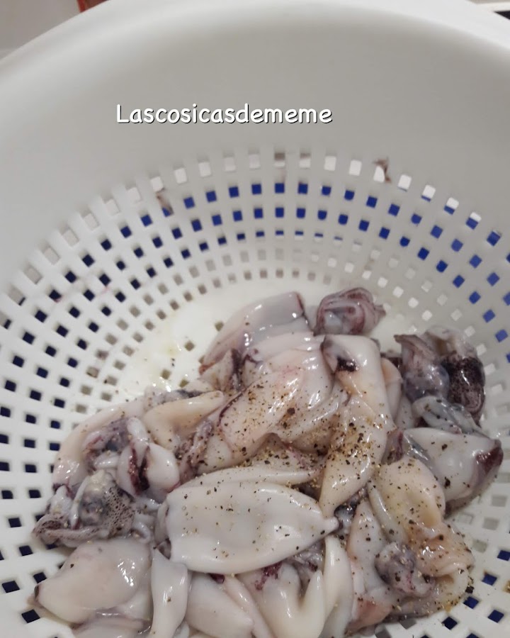 Limpiamos bien los chipirones, dejamos escurrir.