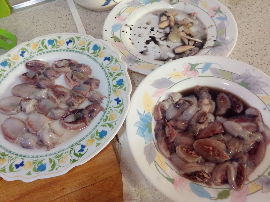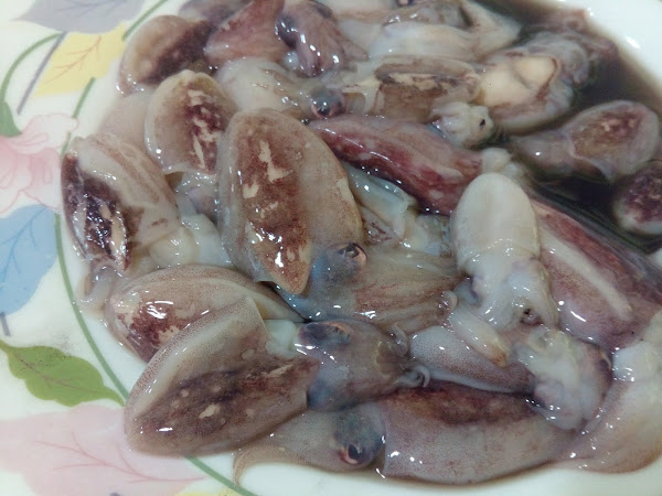 Mientras se hace el caldo, limpiar las pequeñas jibias, sacándoles el "jibión" que tienen en su interior, con cuidado de no romper el cuerpo y no separar la cabeza y las patas de forma que el chopito quede entero.
