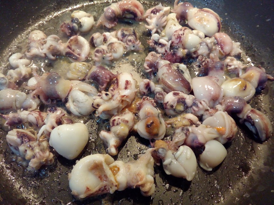 Sacar los chopitos de la sartén y reservarlos calientes.