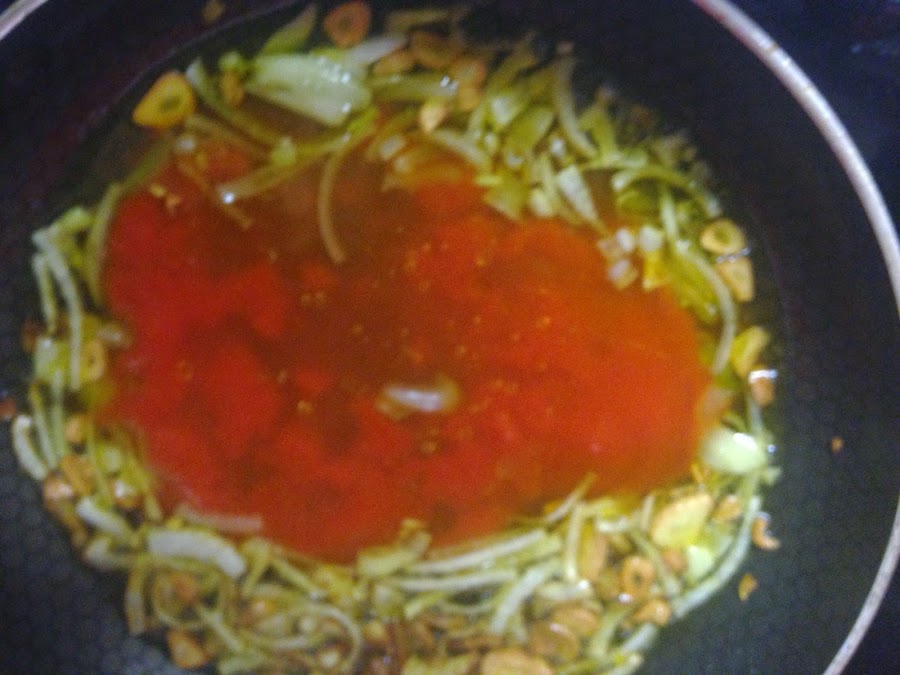 Echaremos el tomate en la cebolla y dejaremos cocer durante 5 min a fuego lento.