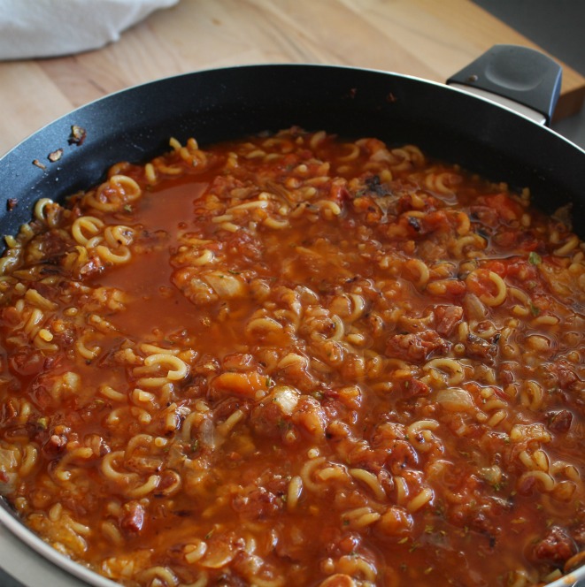 Dejamos hervir, el tiempo necesario para que la pasta esté cocida, pero no pasada (en este caso fueron 12 min.)