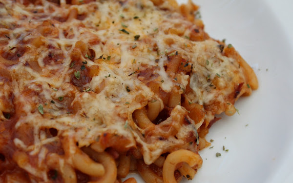 Pasamos todo a una bandeja de horno. Cubrimos de queso rallado.