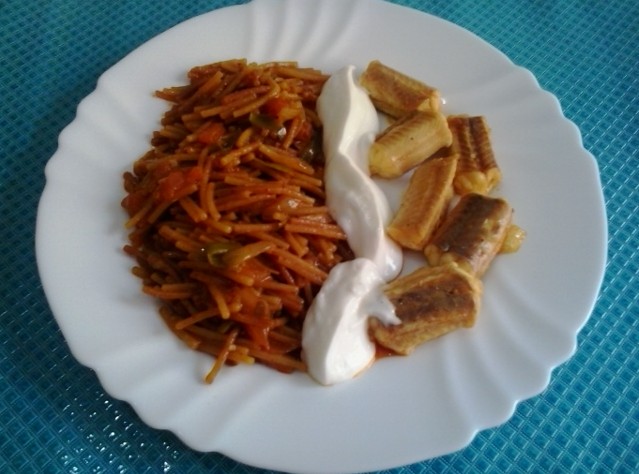 PREPARACIÓNEn primer lugar hervir el pescado con un litro de agua en el que se le pondrá el laurel y sal , mientras en una paellera ó sartén se pone un chorrillo de aceite de oliva que cubra el fondo , se añade la cebolla los ajos y el pimiento a trocitos pequeños y dejar sudar bien , poner un vaso de los del agua lleno de fideos y dorarlos con el sofrito , añadir la cucharada de carne de pimiento choricero , se puede comprar en tarritos , pero quien quiera hacerla ( la receta está en mi blog ) agregar la cúrcuma pimienta y dos vasos del caldo del pescado hervido , cocer hasta que se consuma todo el caldo pero queden jugosos los fideos , ( hay quien los cocina con diferente pescado como merluza ó pescado de roca , pero a mi personalmente este pescado le da gran sabor ) para servir este plato se pone a un lado los fideos , al otro el pescado hervido y para acompañar en medio el alioli ( esta receta va dedicada a Beatriz , una chica que trabaja en el Mercadona de mi barrio ) y .......espero os guste.....