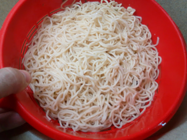 5.- Escurrimos los fieos y lo sumamos a la sarten, mezclamos y echamos salsa de ostras al gusto.