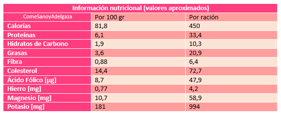 Por último, como siempre, os dejo la tabla de información nutricional que he elaborado teniendo en cuenta los ingredientes que he utilizado. Los valores son aproximados pero, gracias a esta tabla, podréis haceros una idea de lo que estáis comiendo y equilibraréis mejor vuestras comidas. Un abrazo!