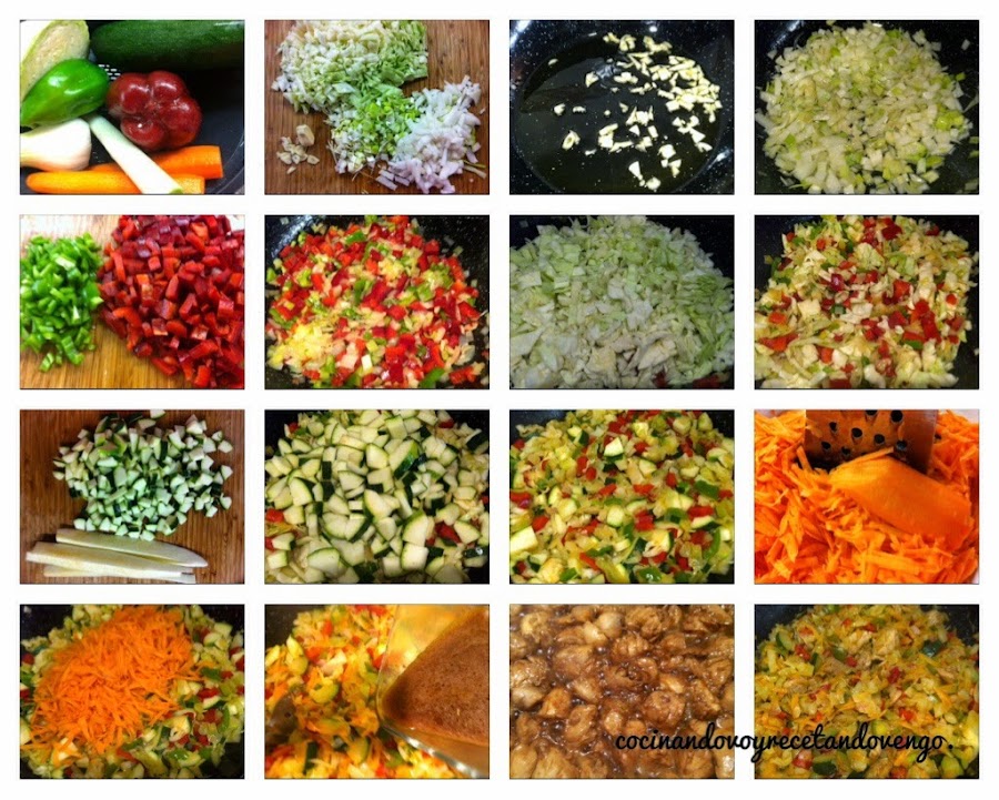 Cuando las verduritas estén en su punto rallamos las zanahorias y las añadimos, mezclamos bien (foto 12,13, 14)