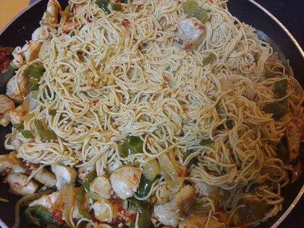 Y los fideos chinos. Removemos muy bien, que queden todos los ingredientes bien mezclados.