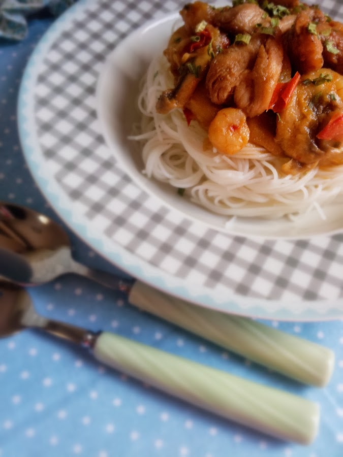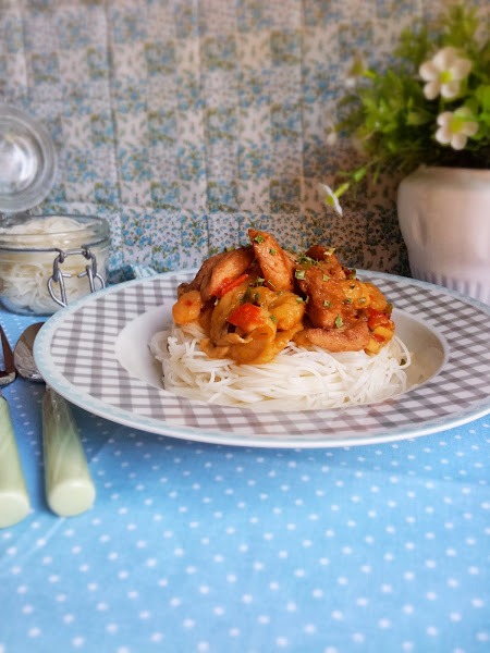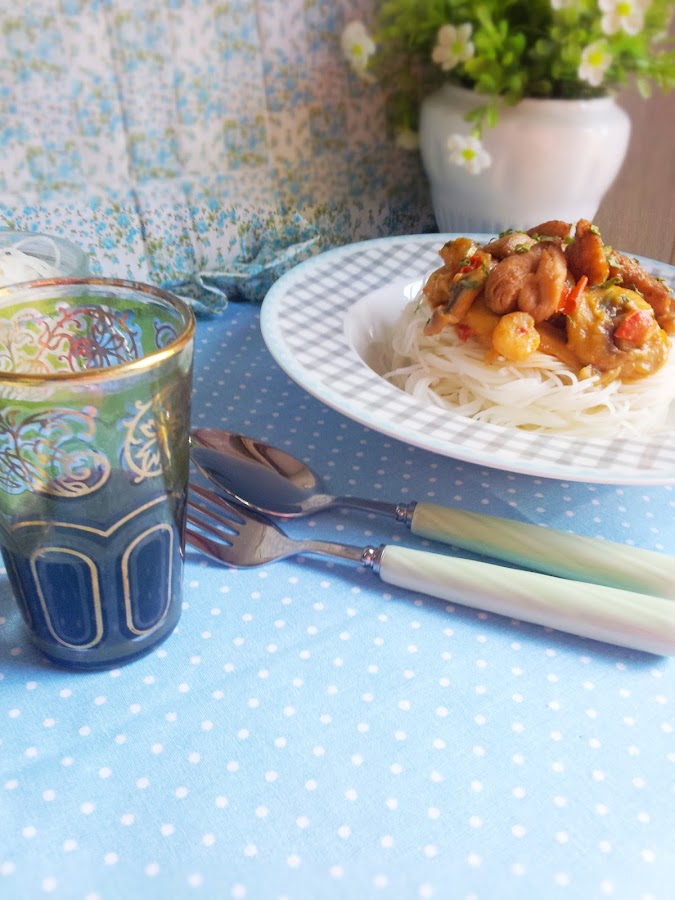 Bueno, ahora vamos a lo importante, la nueva receta. El otro día fue a Carrefour con mi madre y en la sección que tienen de productos de otros países, después de recorrerme el pasillo una y otra vez mirándolo todo... Cogí unos fideos de arroz que son tan típicos en la cocina oriental y que otras veces hemos probado en algunos restaurantes con verduritas y carne y siempre nos han encantado.