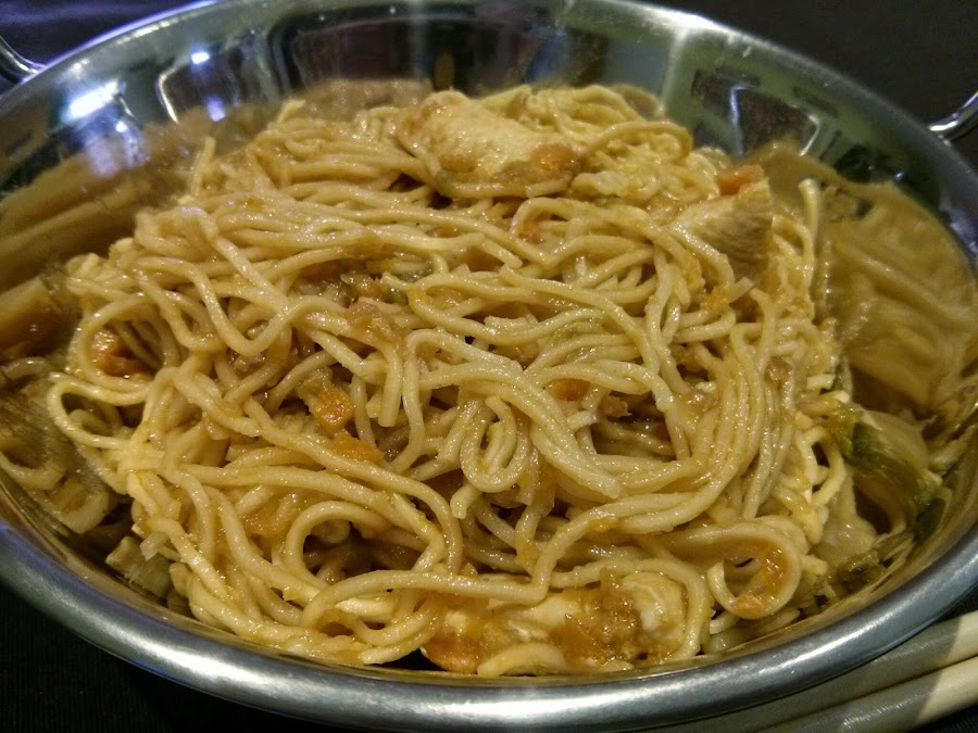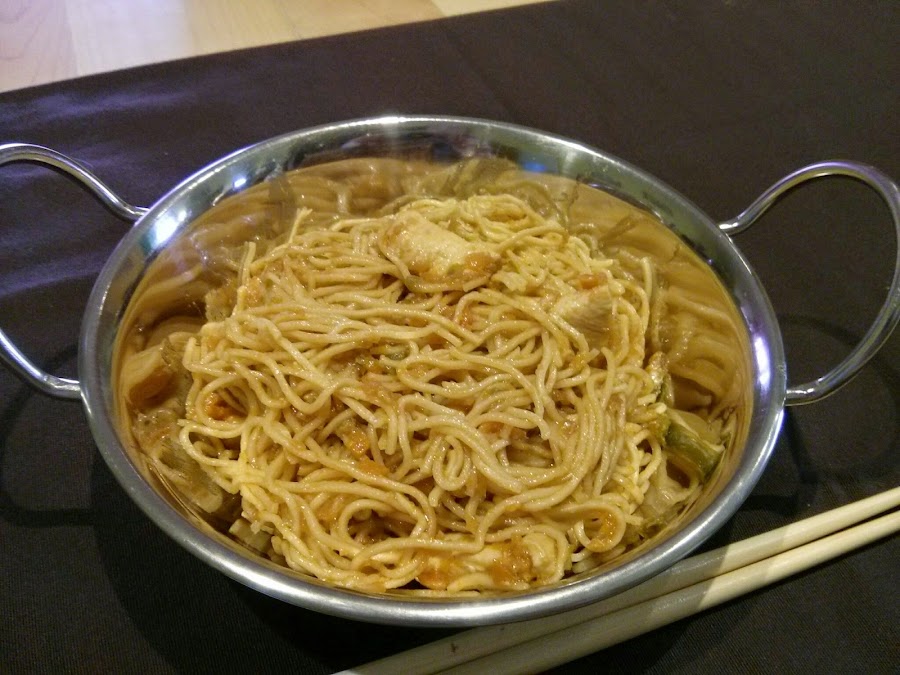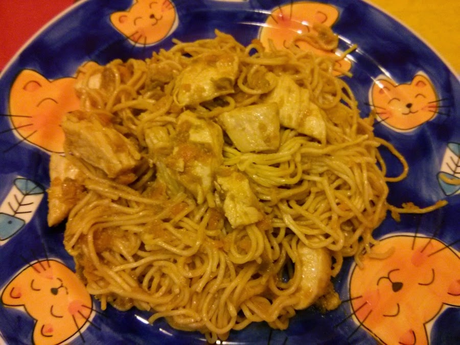 450g. de fideos chinos (noodles) cocidos según marca el paquete, 4 minutos.