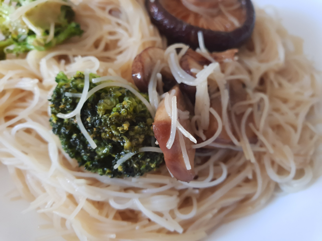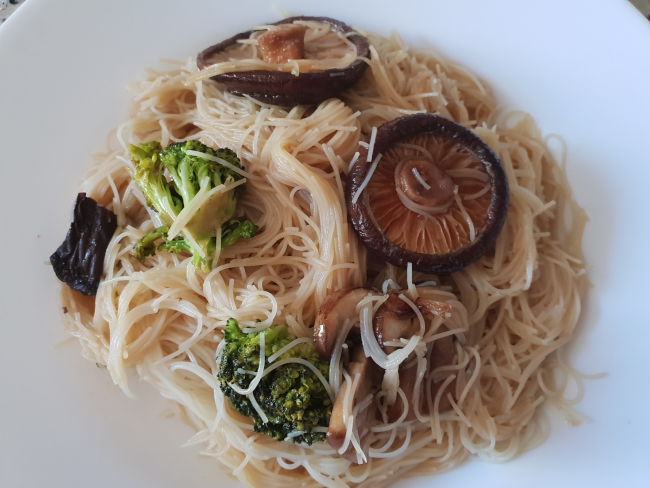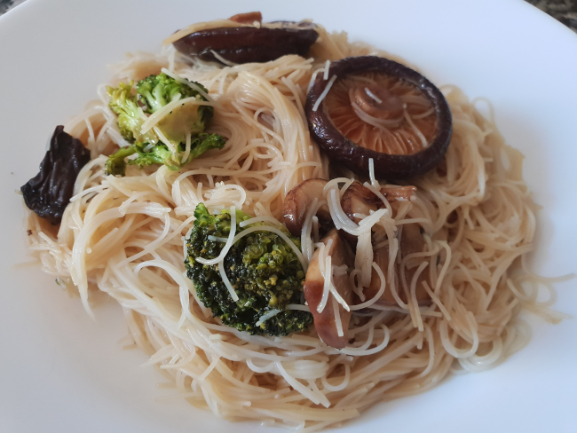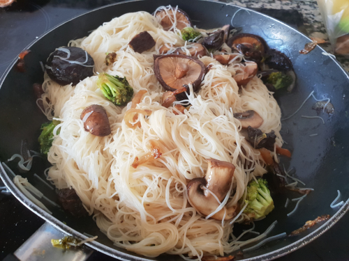 - Mezclar los fideos con las verduras y darle una vuelta.