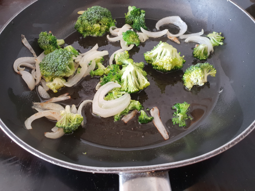 Cuando esté transparente, añadirlos ramilletes de brócoli,