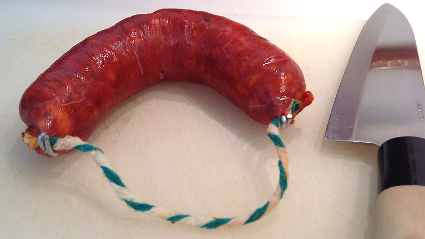 Los chorizos son muy variados en forma, tamaño e incluso en sabor. Utiliza el que quieras pero que esté rico. Este es el que yo he utilizado.